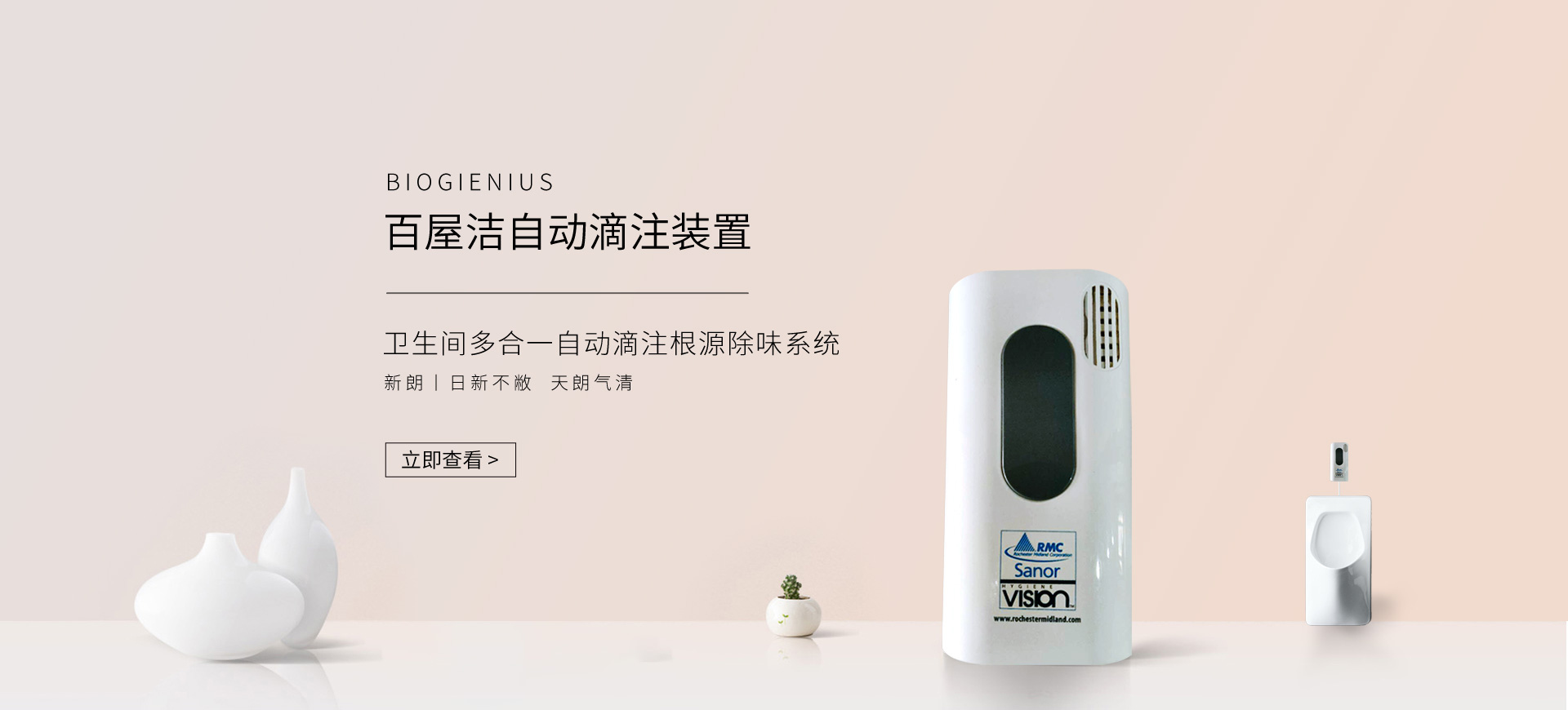 新朗環(huán)境自2015年起與美國具百年歷史的跨國企業(yè)RMC(Rochester Midland Corporation)合作, 進(jìn)口 RMC用于機(jī)械制造、交通運(yùn)輸、航天航空、石油化工、食品禽肉乳制品加工等工業(yè)生產(chǎn)制造行業(yè)的專業(yè)清洗、滅菌系列產(chǎn)品,以及酒店、CBD大廈、學(xué)校(包括幼稚園)、醫(yī)療機(jī)構(gòu)、百貨商場、養(yǎng)殖業(yè)、餐飲業(yè)等商用行業(yè)清潔、消毒系列產(chǎn)品,還有專用于各個(gè)行業(yè)單位“廁所革命”的公共衛(wèi)生間根源除味第5代SANOR?衛(wèi)生間自動(dòng)滴管系統(tǒng)、第6代百屋潔SIOGIENIUS?電子控制衛(wèi)生間自動(dòng)滴注系統(tǒng)等系列產(chǎn)品項(xiàng)目。